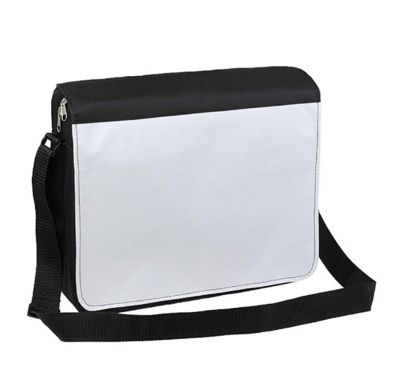 Borsa a tracolla grande 40x29 cm. con chiusura della patella a velcro e parte bianca personalizzabile