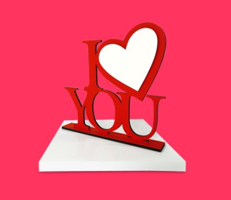 Cornici portafoto rosse disponibili nella versione sagomata I Love You, con cuore, doppio cuore e rettangolare.