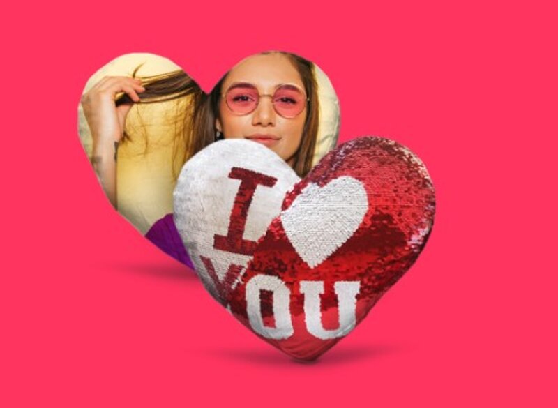Federa per cuscino cuore 40x40 cm realizzata in morbido tessuto poliestere e rivestito da un lato da scintillanti paillettes colorate rosse e bianche reversibili.