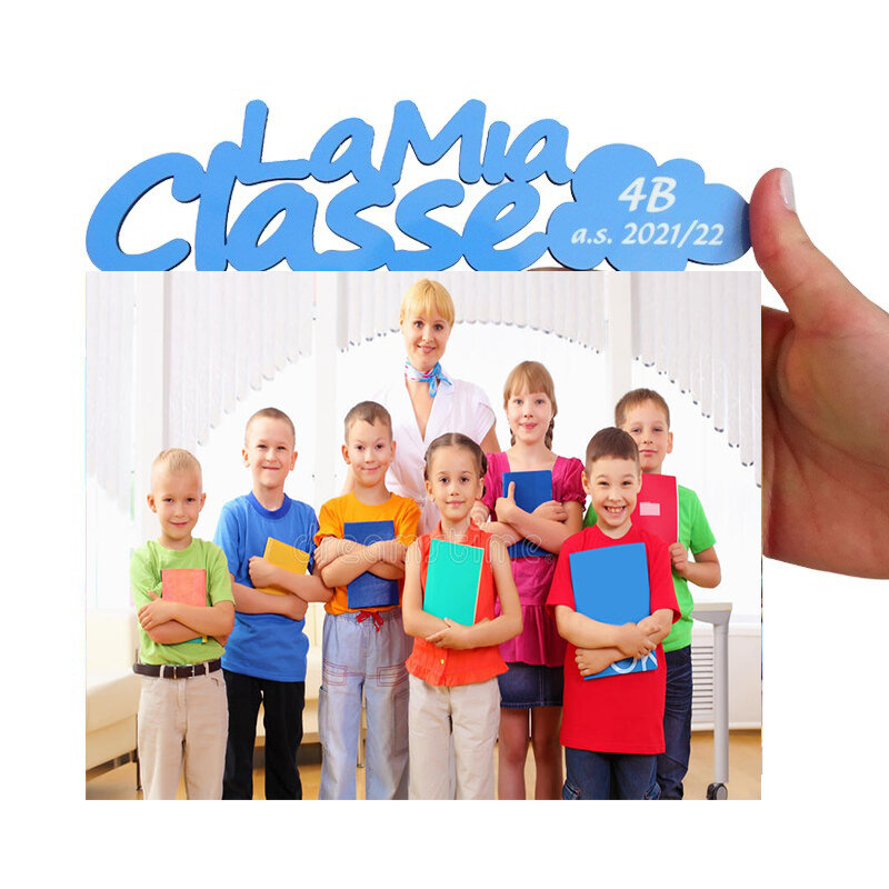Foto cornice in MDF, con perno in alluminio e area di stampa che include anche la scritta "La Mia Classe".