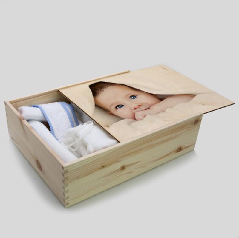 Kit Regalo Bimbo Scatola in Legno Con Coperchio Sublimatico 36x28 h. 10 cm.