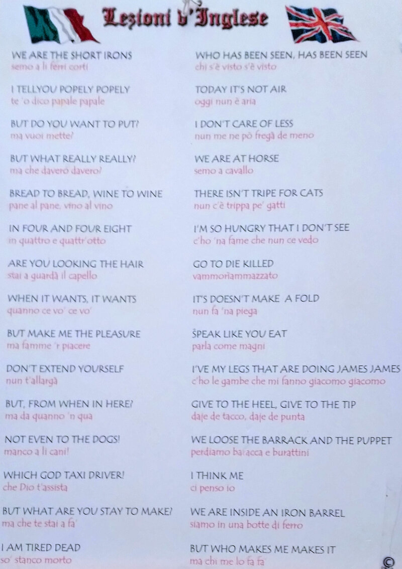 Modi di dire italiani tradotti alla lettera in inglese.