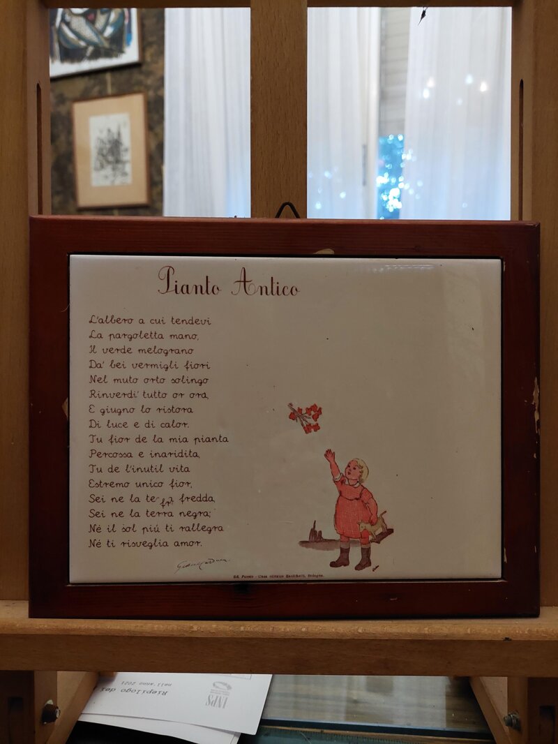 Stampa su ceramica di Pianto antico di Giosuè Carducci con illustrazione d'epoca incorniciata in legno 18x24cm.