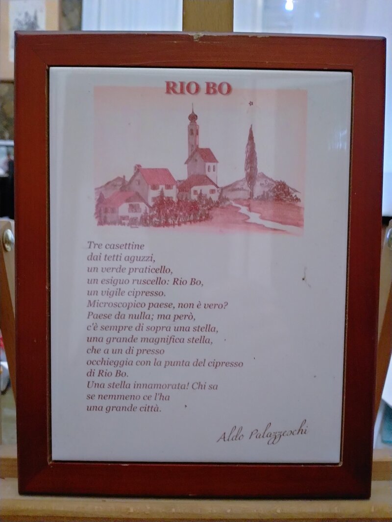 Stampa su ceramica de "Rio Bo" di Aldo Palazzeschi con cornice in legno 18x24 cm.