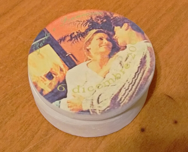 Scatolina in cotto rotonda 8 cm. con coppia